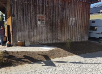 Kürzlich war der Bagger da und hat „aufgeräumt“. Es war viel Arbeit, aber endlich ist der Platz, auf dem ich aufgestellt werde, fertig.Hinter mir gibt es schönen grünen Rasen, vorn…
